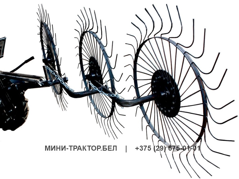 Ворошильные грабли используются для сгребания густой травы и сена из прокосов в валки ворошения травы в прокосах, при влажности травы до 70%, оборачивания, разбрасывания и сдваивания валков, в том числе соломы перед прессованием. Используя ворошильные грабли, вы можете легко, при помощи компактного минитрактора или мотоблока Скаут ускорить процесс просушки травы и получить сено высокого качества.
