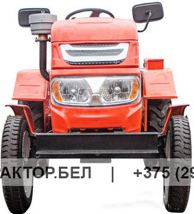 Ременной привод от двигателя к редуктору трактора позволяет использовать различное навесное оборудование как заднего, так и фронтального типа. На переднюю часть трактора устанавливается роторная или сегментная сенокосилка, или передняя лопата-отвал. Эти агрегаты имеют гидроцилиндры, и могут подниматься или опускаться. Заднее навесное оборудование так же управляется гиддроприводом. Полный перечень навесного оборудования вы можете увидеть в разделе “сопутствующие товары”