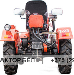 Трактор не оснащается кабиной, его легко хранить в небольших помещениях, гаражах. Одним из основных преимуществ трактора T-24 является универсальность в применении большого количества надежного недорогого навесного оборудования. К трактору такого типа применяется большая номенклатура навесных орудий, специально созданных для легких мини-тракторов и тяжелых мотоблоков с дизельными двигателями водяного охлаждения, ременным приводом и задним шестеренчатым валом отбора мощности.