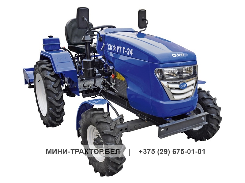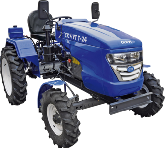 Трактор не оснащается кабиной, его легко хранить в небольших помещениях, гаражах. Одним из основных преимуществ трактора T-24 является универсальность в применении большого количества надежного недорогого навесного оборудования. К трактору такого типа применяется большая номенклатура навесных орудий, специально созданных для легких мини-тракторов и тяжелых мотоблоков с дизельными двигателями водяного охлаждения, ременным приводом и задним шестеренчатым валом отбора мощности.